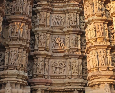 Frühstück im Hotel und Fahrt nach Khajuraho. Nachmittag besuchen wir die Khajuraho Tempel Anlage (UNESCO-Weltkulturerbe). Diese Tempel wurden zwischen 900 und 1130 n. Chr. von den Chandella-Herrschern erbaut. Die spektakulären Schnitzereien und erotischen Skulpturen von Khajuraho sind schon immer ein faszinierender Punkt für alle. Die Tempel von Khajuraho sind mit herrlichen erotischen Darstellungen aus der Menschen- und Götterwelt verziert. Am Abend können wir die Kandariya Tanz-Show besuchen (Optional). Übernachtung im Hotel in Khajuraho.