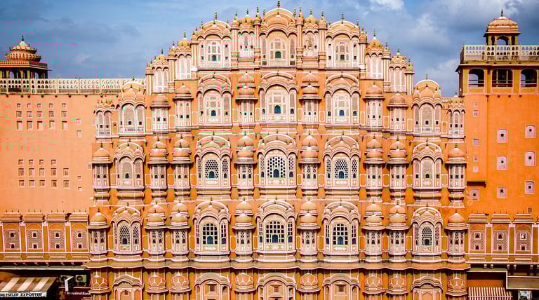Vormittags machen Sie einen Ausflug zum Fort Amber. Den steilen Weg hoch zu der Festung legen Sie auf einem traditionell geschmückten Elefanten zurück (auf Wunsch per Jeep). Oben erwarten Sie märchenhafte Paläste, Privatgemächer sowie Säulen- und Audienzhallen, die mit detaillierten Malereien, Intarsien- und Spiegelarbeiten verziert sind. Hier bewundern Sie auch den Spiegelpalast (Sheesh Mahal), bei dem nur ein Licht genügt, um den gesamten Raum schimmern zu lassen. Daraufhin besichtigen Sie Jaipur mit dem Panna Meena ka Kund Stufenbrunnen, dem Galtaji-Affentempel, dem „Palast der Winde“ (Hawa Mahal), dem Jantar Mantar Observatorium und dem Stadtpalast.